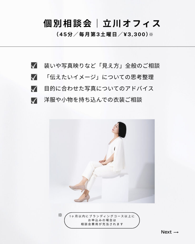 装い・色・写真の印象を45分で整理する個別相談会を開催しています。